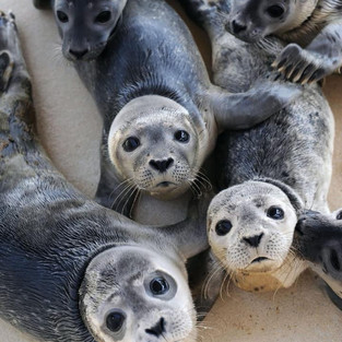 Humans have over fished a lot of their hunting grounds. After grey seal pups have shed their white coats, like the ones pictures, they are killed for their fur (still today in Canada and the UK). They are also killed by fisherman trying to prevent damage to their fishing nets and traps and on the premise of their beliefs that their fish stocks are being depleted due to the abundance of seals. Let us not forget that they can just as easily become entangled in fishing nets and be subject to the consumption of plastics and the threats of oil spills.